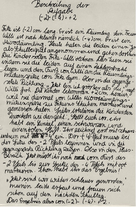 Was mich aber restlos von dem Ansatz des dialogischen Lernens überzeugte, war ein Hausaufgabenbeitrag einer Schülerin zur Subtraktion zweier negativer Zahlen: